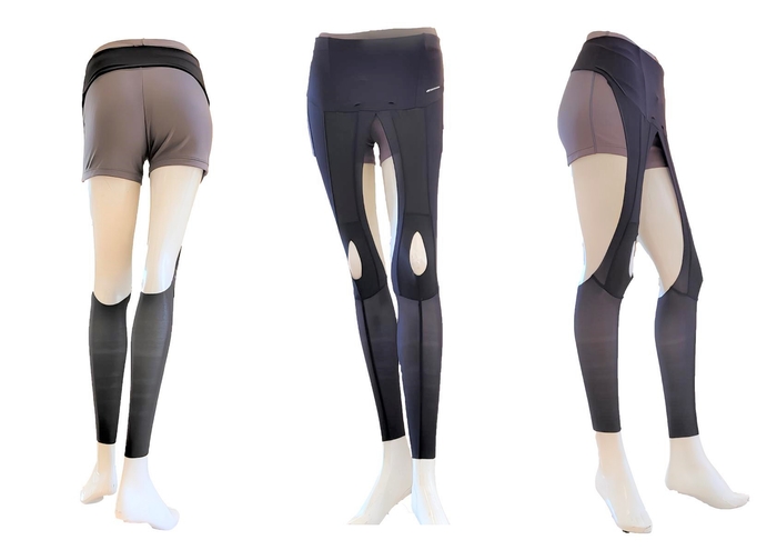 お尻から膝裏まで生地がない特徴的なオープン形状で脱ぎ履きしやすく、快適な着け心地になっています。