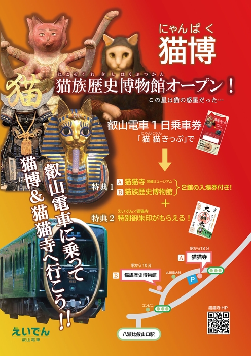 叡山電鉄株式会社(本社:京都市左京区、社長:豊田秀明)では、招喜猫宗総本山 猫猫寺(所在地:京都市左京区、管長:加悦徹)が2025年5月24日(土)11時に猫族歴史博物館(通称:にゃんぱく)をオープンされるのを機に、「京都八瀬 猫猫きっぷ」を発売します。
