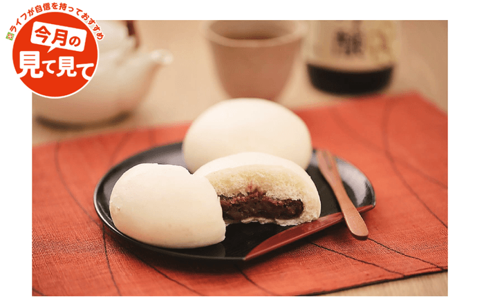ライフが自信を持っておすすめする「今月の見て見て」の近畿圏2月商品に選ばれた「ライフプレミアム 酒饅頭」は、「ライフプレミアム 純米大吟醸」の酒粕を使用した酒饅頭です。北海道産小豆を使用し、日本酒の上品な香りをお楽しみいただける一品です。