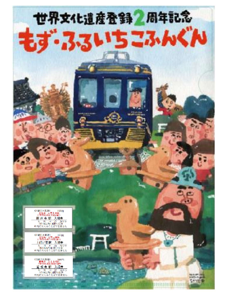 近鉄では、世界遺産「百舌鳥・古市古墳群」登録2周年を迎えたことを機に、百舌鳥・古市古墳群の普遍的価値を広く知っていただくことを目的とし、10月1日(金)から2022年3月31日(木)までの間、クリアファイル付き記念入場券セットと駅名キーホルダーを発売します。