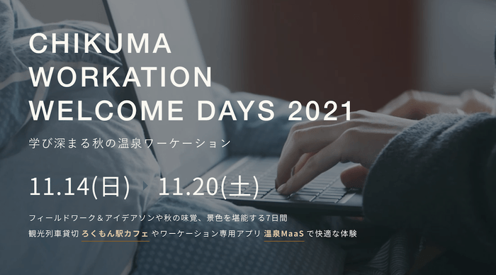 株式会社ふろしきやは11月14日から20日までの7日間、千曲市、信州千曲観光局、長野県と提携し「学び深まる秋の温泉ワーケーション」を開催します。期間中は、社会課題をテーマに参加者と学びを深める「信州周遊フィールドワーク&アイデアソン」を実施します。観光列車をカフェ利用できる「ろくもん駅カフェ」やお寺を貸切った「テラワーク」を体験しながら、仕事やフィールドワークで信州を満喫できるプログラムとなっています。