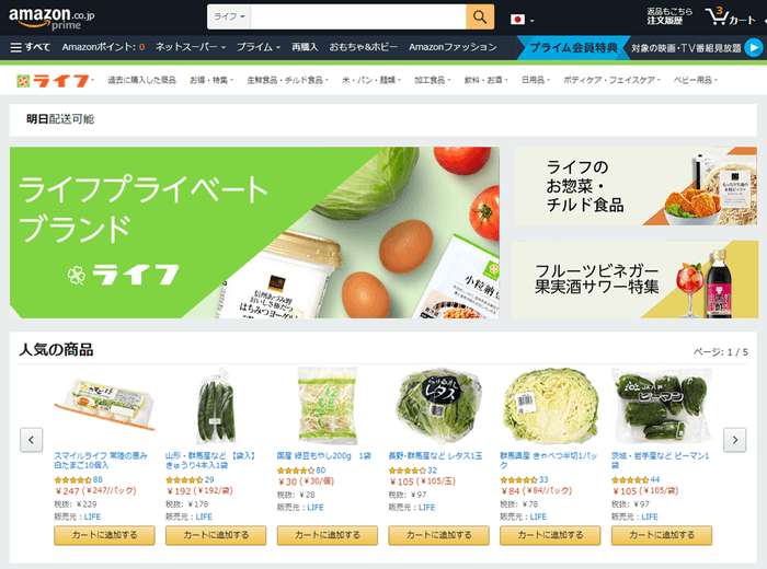 ライフで取り扱う生鮮食品や惣菜をAmazonを通じて最短2時間でお届け【大阪府でのサービス提供エリアを拡大】