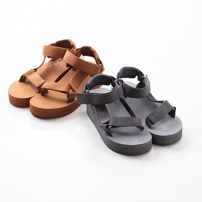 定番のスポーツサンダルにウェッジソールをMIX。海、山、川などアウトドアからタウンユースまで幅広いシーンに合わせやすく、この夏のマストアイテム間違いなし。ストラップは面ファスナーを使用。足の幅に合わせて、調節が可能なので、幅広さんにもオススメです。