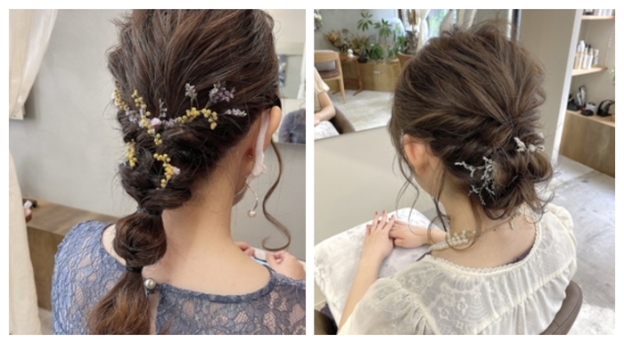 花屋を併設したヘアサロンである『mallow』では、ご要望に合わせてヘアセットに花を使用してもらえます。
