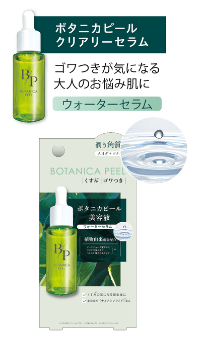 洗い流し不要、保湿タイプ「ボタニカピールシリーズ」は、毎日使える美容液タイプのピーリングです。毎日使うことで、ゆっくりと角質をやわらげます。