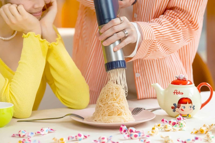 BEB5土浦は、星野リゾート初の自転車を楽しめるホテル。TAMARIBAには、スムージーが作れる自転車「フェンダーブレンダー」があり、本プランでは、ミルキーソースを使用したミルキースムージーを作ることができます。自転車についているミキサーに材料をセットし、30秒ほど漕ぐと完成。ミルキーの優しい甘さをスムージーで楽しめます。