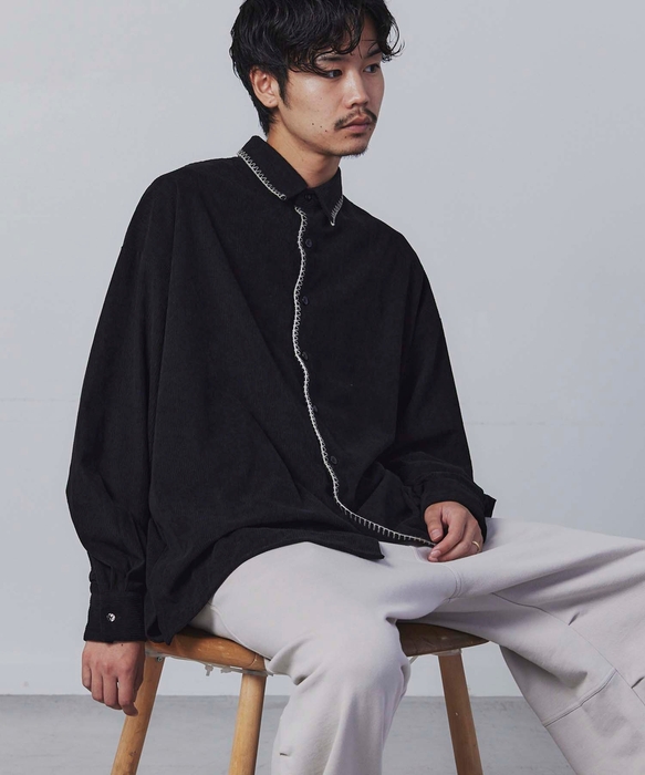 ビッグサイズながらもただ大きいだけではないシルエットと着心地にこだわったパターン設計がポイントのコーデュロイシャツ。衿と前端にはブランケットステッチを配することで、やわらかい印象に。