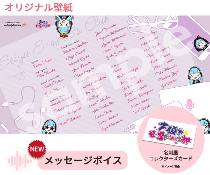 声優e-Sports部 LEVEL∞ コラボゲーミングPCをご購入頂いた方にもれなくメッセージボイスと声優e-Sports部オリジナル壁紙、3期生までの全11名の名刺風コレクターズカードをプレゼント!