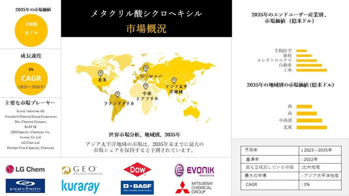 メタクリル酸シクロヘキシル市場の地域動向、成長予測、世界産業分析レポート 2023-2035