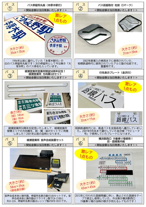 【第2部】リアルオークションにて出品する商品の紹介 (6点の鉄道部品と6点のバス部品の計12点をご用意しています。)