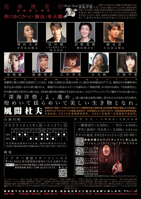 独特の世界観で人々を魅了するクリエイター集団 深海洋燈(しんかいらんぷ) 熱海殺人事件『売春捜査官』上演決定 カンフェティでチケット発売 | NEWSCAST