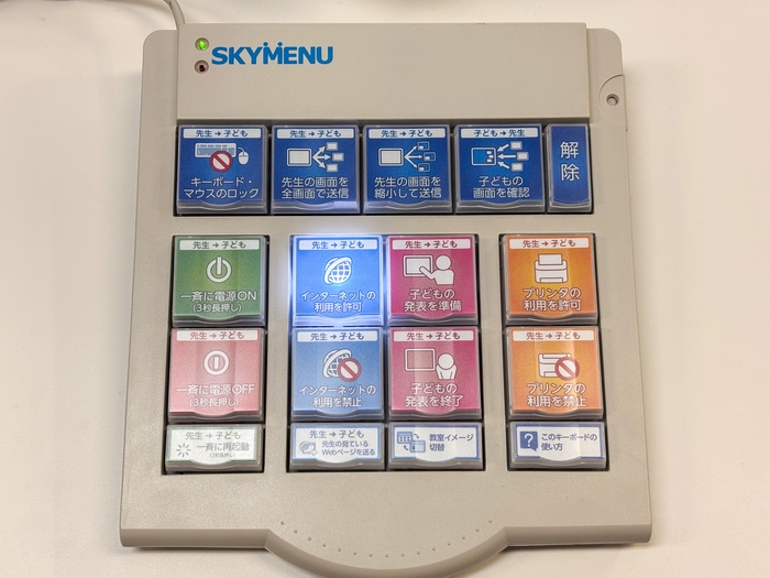 Sky株式会社が提供するSKYMENUを導入し、無線環境でありながら、教員が生徒のPC画面をリアルタイムで確認・制御できるシステムを構築しました。これにより、教員は生徒の学習状況を把握し、課題配布や使用制限など適切な指導やサポートを提供できるようになります。