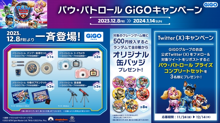 株式会社GENDA GiGO Entertainment(本社:東京都港区 代表取締役社長:二宮 一浩 以下当社)は、2023年12月8日(金)より、GiGOグループが運営する店舗にて12月15日(金)より公開される映画『パウ・パトロール ザ・マイティ・ムービー』とコラボレーションした限定企画を開催いたします。