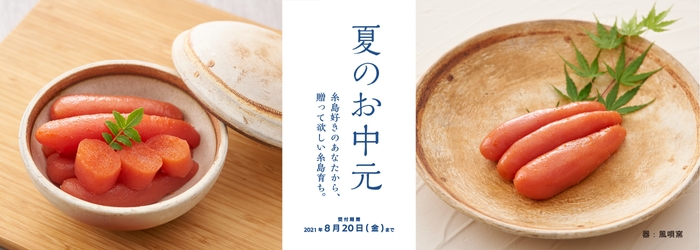 夏のお中元の受付開始! 福岡・糸島から贈るこだわりの明太子をはじめ、こだわりの商品を集めました。気軽に会いにいけないからこそ、気持ちを込めたギフトを贈りませんか?