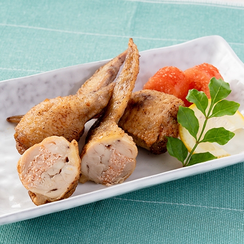 手羽先の中に明太子をたっぷりと詰め込みました。