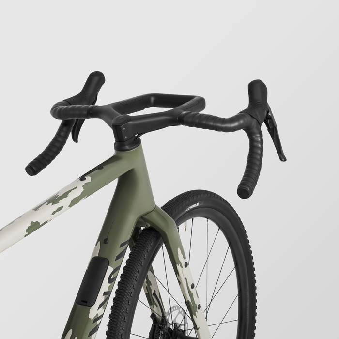 Canyon定番のHB0067丸型ハンドルバーとST0046ステムを組み合わせ、ほどよいフレアとスイープで手首に優しく、角度調整も自在。好みのパーツへの変更や汎用アクセサリーの取り付けも容易です。