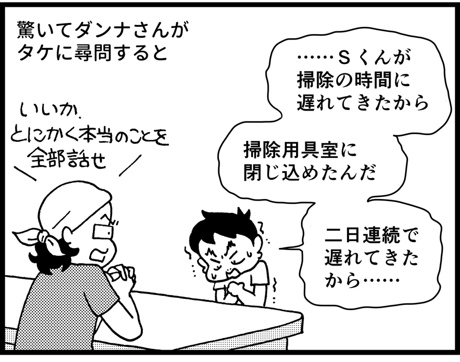 被害者の児童の親に謝罪はしたものの、長男が心を病んでいると教師から指摘されたり、全校集会で吊るし上げにあったりと、一家は四面楚歌に。パニック状態の由軌子さんですが、元編集者のダンナさんがいろいろと調べたところ、相手の親にも不審な点が出てきて……。