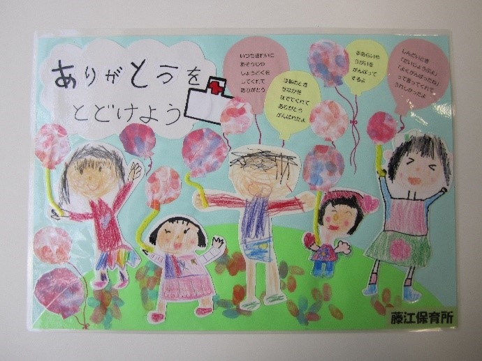 私たちにできる取組の一つとして,コロナ禍で「支えてくれる人」や「応援したい人」に感謝やエールの想いを届けたいという趣旨のもと,“ありがとうをとどけよう”をテーマにポスターを作成し,医療従事者のみなさんに届けます。