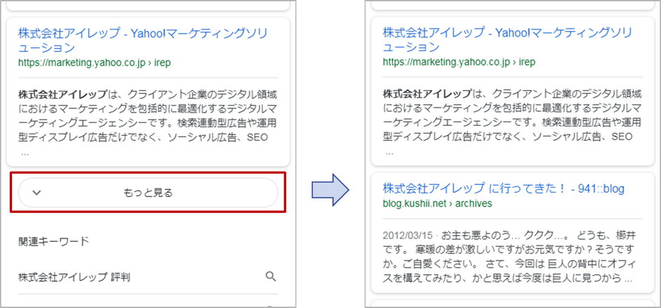 ※Google モバイル検索(www.google.co.jp)にて「アイレップ」での検索結果の表示例