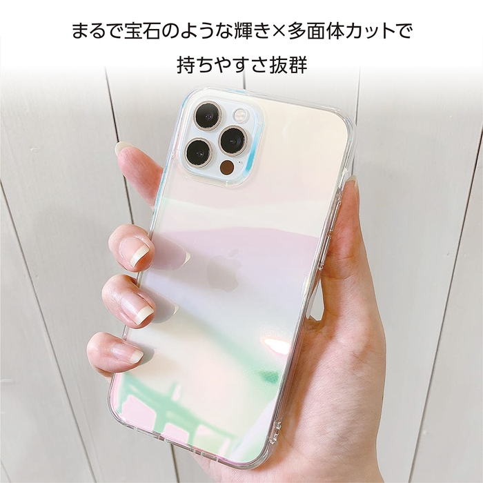 【Carat カラット】は、HEXAGONと同じ形状にオーロラカラーのハーフミラーシートを使用しているため、光の当たり方や見る角度によって色味の変化や輝きを楽しむことができるTPUソフトケースです。