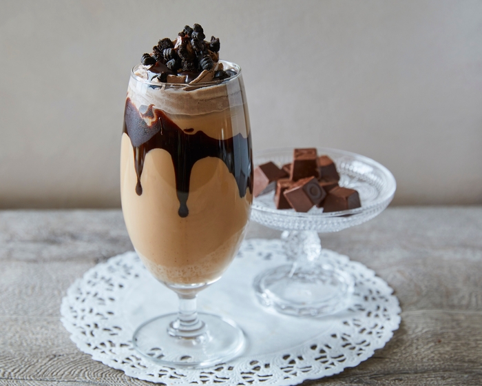 チョコレートソースとチョコレートホイップクリームを使用した満足感のある単品デザートミルクティーです。可愛らしい見た目はもちろん、ココアバタークッキーのザクザクした食感も楽しめるほか、氷なしのカスタマイズも可能です。