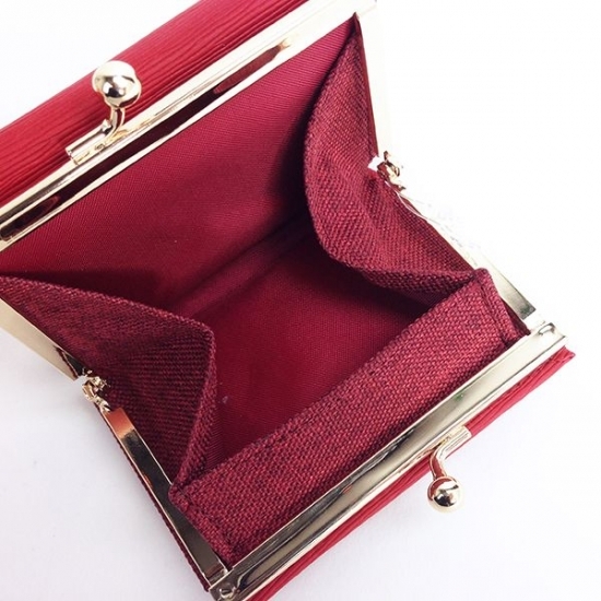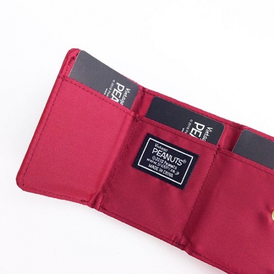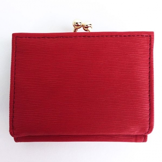 鮮やかレッドとゴールドのネームが華やかなコンパクト財布は、オトナの女性にぴったり。