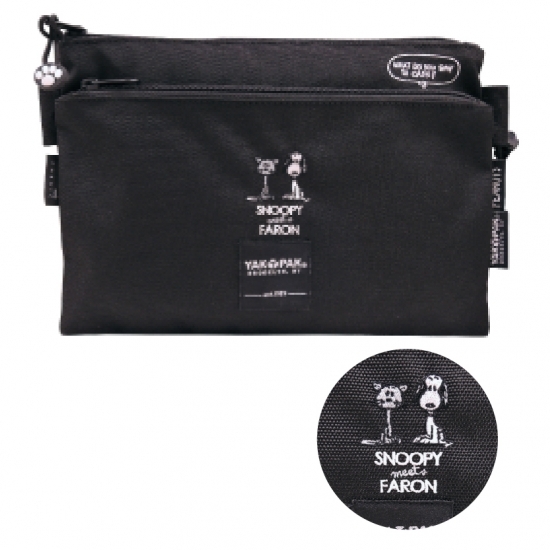 YAKPAKコラボのサコッシュはスヌーピー&ファーロンの刺繍がポイント。何にでも似合いそうなベーシックデザインのアイテムです。