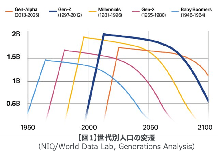 ・Z世代は全世界人口の約25%を占め、今後50年にわたって市場で最大の消費者層となり、今後10年間で最も消費額の伸びが顕著な世代となる