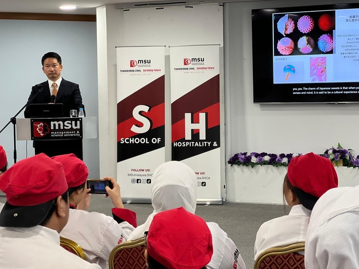 国際和菓子協会 代表理事でありストラク株式会社 代表取締役の渡辺大河は、2025年6月、マレーシアのManagement and Science University(MSU)にて特別講師を務め、和菓子文化を題材とした異文化交流と経営学の授業を実施しました。