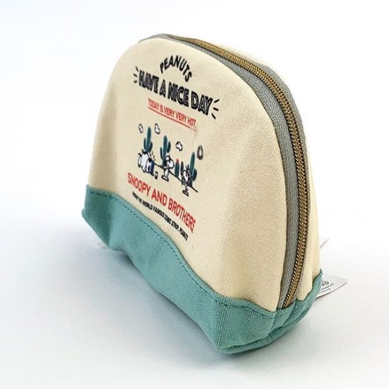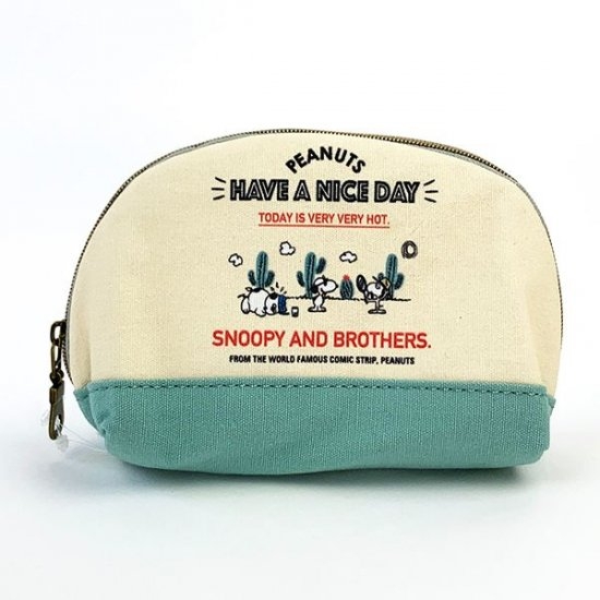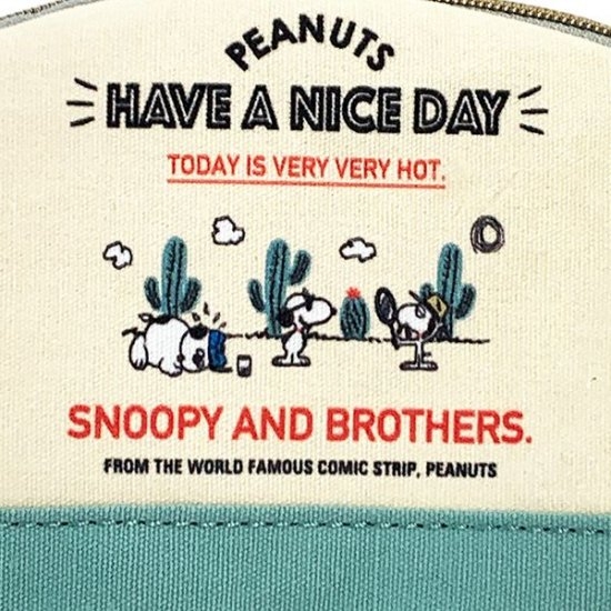 キャンパス生地×サボテンのデザインが絶妙にマッチしたポーチです。上の英文に書いてある通りみんな暑そうですね~スヌーピーもサングラスをしています♪