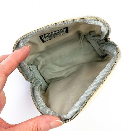 マチが広いのでコスメもしっかり入ります。サニタリーポーチとしてもお使いいただけます。これひとつ持っているだけで気分が上がりますね♪