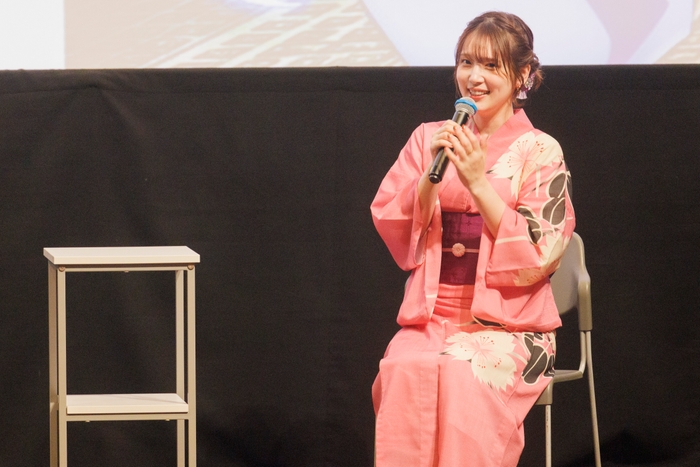 第1話と第2話の上映が終わり興奮冷めやらぬ中、司会進行を務める木村さんがステージに登場すると、そのままキャスト陣のトークショーへ突入。この日は登壇キャスト全員が、作品の世界観とリンクした浴衣で登場し、華やかな姿に客席からは思わず歓声が上がった。
