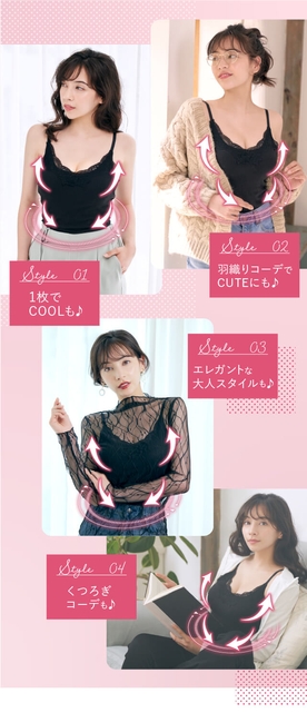 キャミソールの内側に360°のパワーネットを内蔵しているため、外から見ると可愛いキャミソールでも、しっかり着圧できる構造になっています。