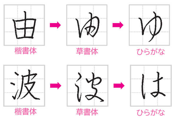 ひらがなは「漢字」からつくられ、平安時代に完成しました。