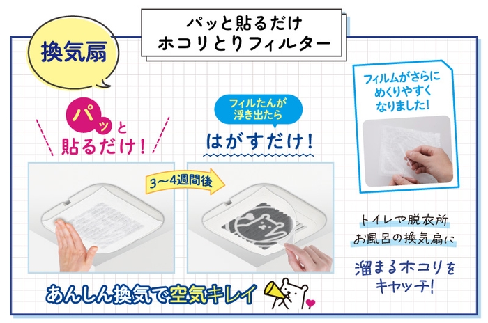 空調機器などの家電や排気口に使えるフィルターも続々増えているので、汚れが気になるところにパッと貼って簡単掃除♪