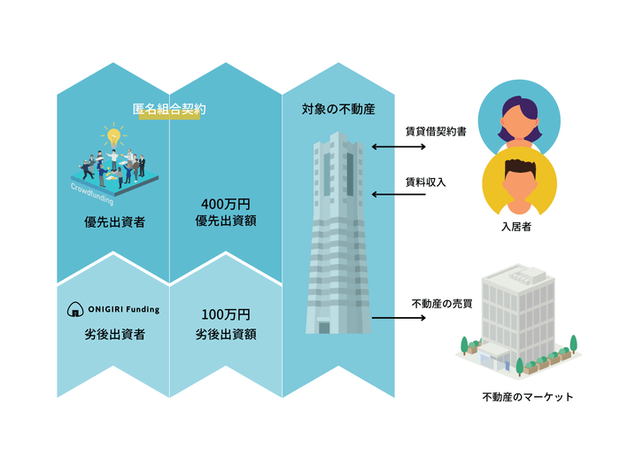 優先出資と劣後出資による出資金をもとに対象不動産の取得・運営を行います。