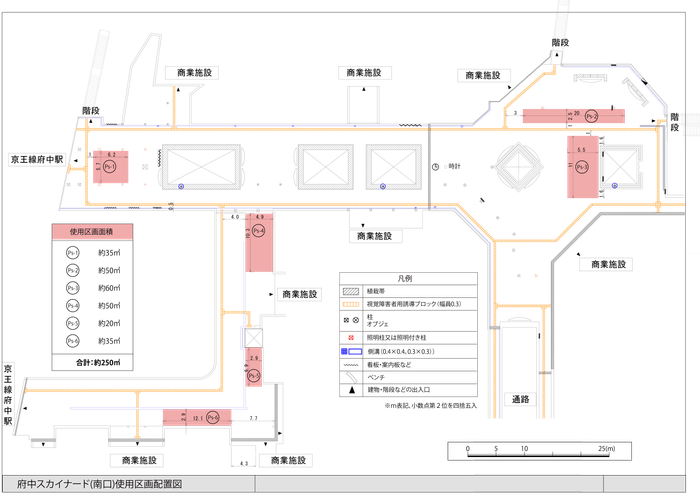 なお、使用の内容によっては、近隣店舗との兼ね合い等の理由で、特定の使用区画での使用を認めない場合があります。