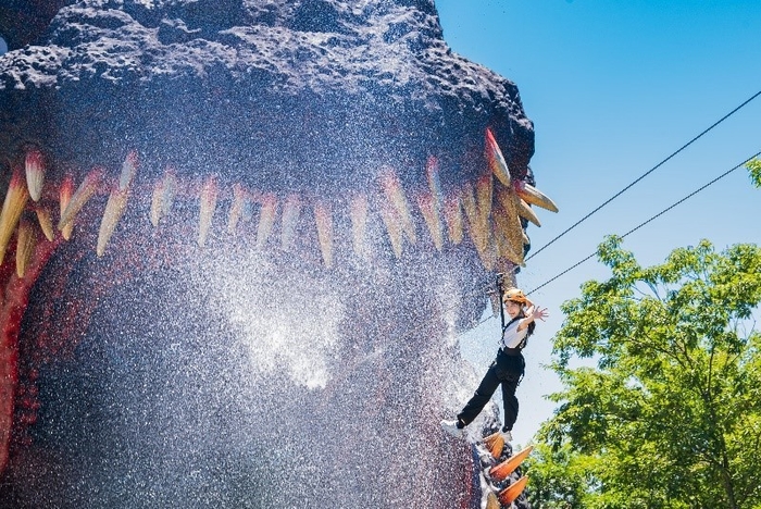 期間中、ジップライン「体内コース」を体験される方を対象に、滑空中に真下から大量の水が吹き上がる夏限定の演出をお楽しみいただけます