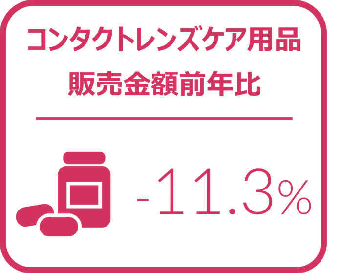 2024年第2四半期(4‐6月)のコンタクトレンズケア用品の販売は、金額前年比11.3%減とマイナスで推移した。店頭では11.5%減、インターネットは11.1%減となり、各チャネルで二桁の減少となった。