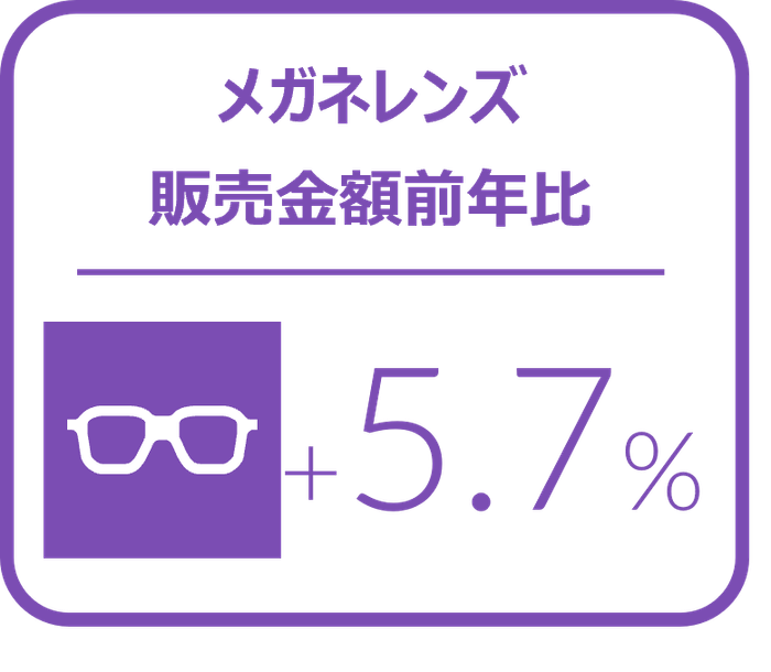 また、メガネレンズ全体の販売金額前年比は5.7%と枚数前年比を上回った。枚数ベースで構成比の高い単焦点レンズが好調に推移し、平均価格も上昇した事が市場を牽引した。
