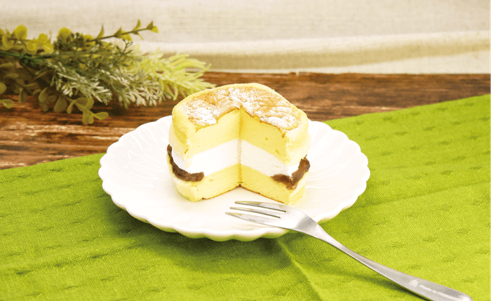 『和洋折衷・温故知新』をテーマにしている大三萬年堂HANAREは、兵庫県で約360年続く老舗和菓子屋。昔ながらの伝統の味や風味を大切にしつつ、現代のトレンドに合わせた商品に仕上げるため、ふわっとしっとりしたスフレでHANARE監修の特製あんことホイップクリームをサンドしました。