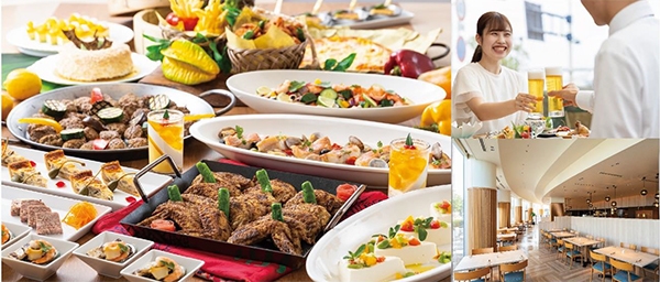 このビアホールでは、メインプレート「牛肉のステーキ ポルト酒ソース」(お1人様一皿ご提供)を目玉に、ブッフェ料理は「讃岐コーチンのアラバマチキン」や、ギリシャの代表的な料理と言われる「ムサカ」、牛と羊を使ったトルコ料理「キョフテ」、「スパイシーカレー」などスパイシーな料理と、涼を感じる南アメリカの魚介のマリネ料理「セヴィーチェ」、「冷奴のケーキ仕立て」、「トマトそうめんのカッペリーニ風」などをご用意。