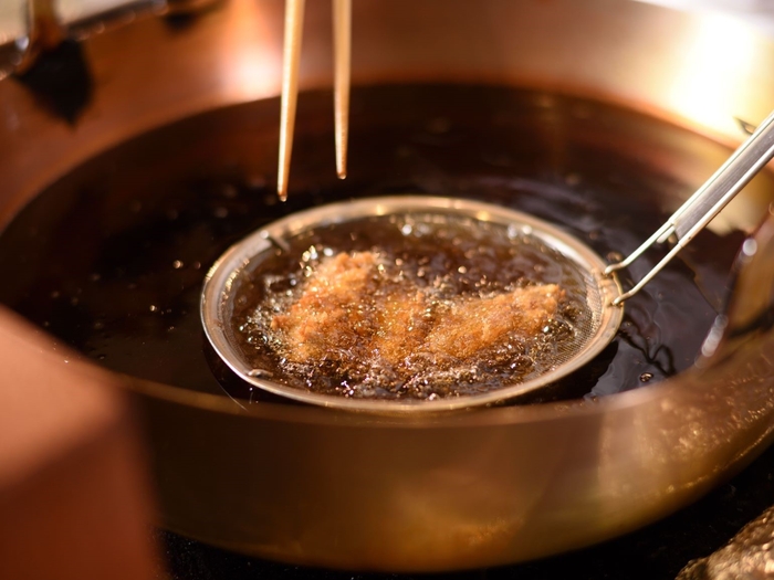 温度の異なる揚げ油で二度揚げするから、外はサクッと中はジューシー。