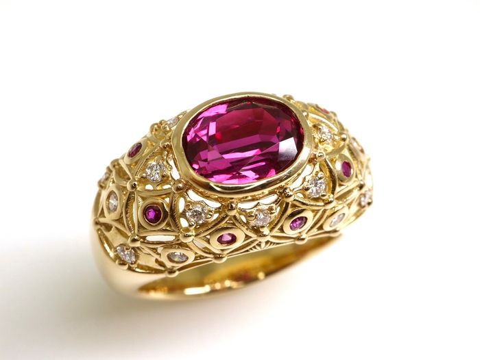 今回2回目の開催となる本コンテストは一般部門とキッズ部門があり、デザインを募集するアイテムは、リング・ネックレス、テーマ石はルビー・サファイア・エメラルドの3種です。募集したデザインは、外部の審査員とともに審査を行い、一般部門、キッズ部門それぞれで大賞、特別賞を決定します。大賞は賞金進呈と合わせて、応募デザインを製品化し、展示会等でお披露目した後、応募者にプレゼントします。