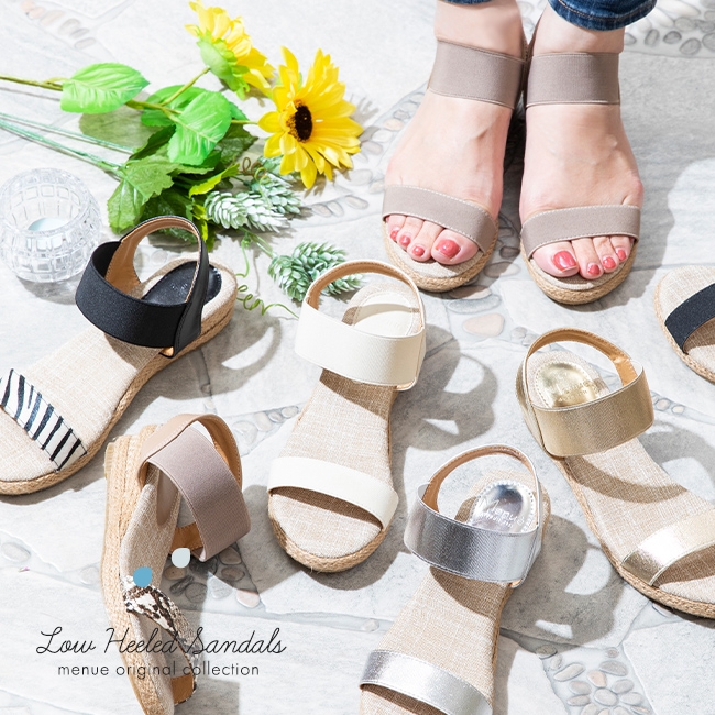 夏のお出かけに涼しい足元。ローヒールウェッジゴムサンダル
