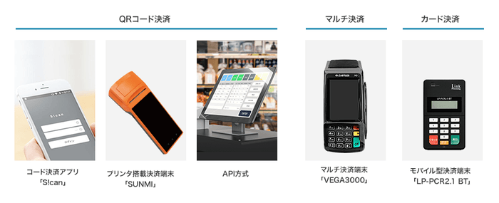 SBPSは、これまで店舗向けにQRコード決済アプリやマルチ決済端末などを提供してきましたが、この度QRコード決済に特化した専用端末「SUNMI」とAPI方式のラインアップを追加しました。事業者は、SBPSの提供する豊富な店舗向け決済サービスのラインアップから、業態やビジネス規模に合わせて最適な提供方式を選択できます。