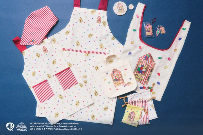 ホグワーツ魔法魔術学校の生徒たちも大好きなお菓子屋さん「HONEYDUKES」をモチーフにした子供用エプロンや巾着袋