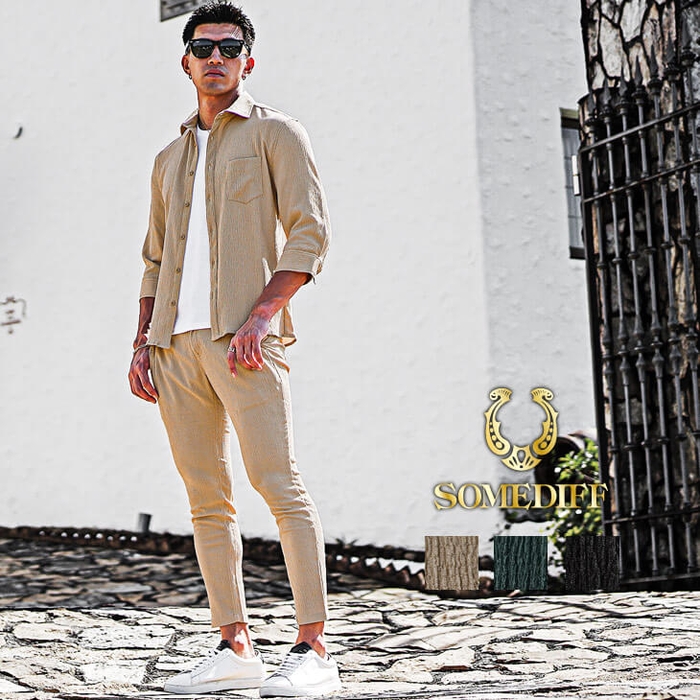 『大人のオトコ』を追求するファッションサイトjoker(ジョーカー)より、軽やかさバツグンの【楊柳スキニーセットアップ】【楊柳長袖シャツセットアップ】が5月22日に発売開始。