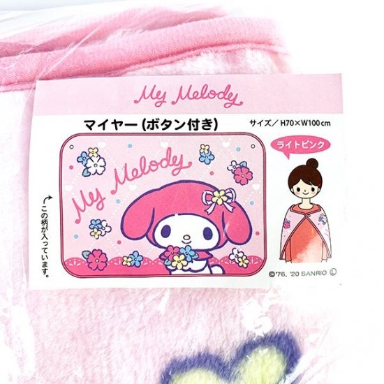 ブランケットの全体像はこちらになります。お花に彩られたメロディちゃんがとっても可愛いです♡キティちゃんのブランケット同様、ボタンがついているため肩にかけることができます。メロディちゃんに温めてもらいましょう♪