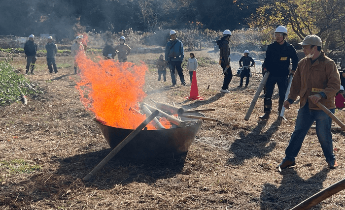 ② 竹炭づくり体験 :焚火の火種を入れて竹炭をつくろう